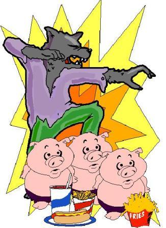 For these little people, I wrote a fun sequel to the three little pigs. The pigs were all at MacDonalds when the wolf and his many relatives decided they had had enough and blew up the house of bricks with dynamite.