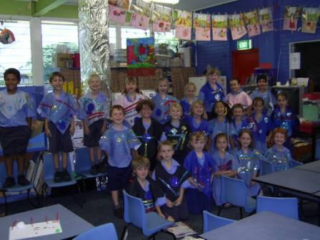 Kids in space suits On the right we have a picture of the grade one students in their space suits. The wonderful and talented space cadets! |